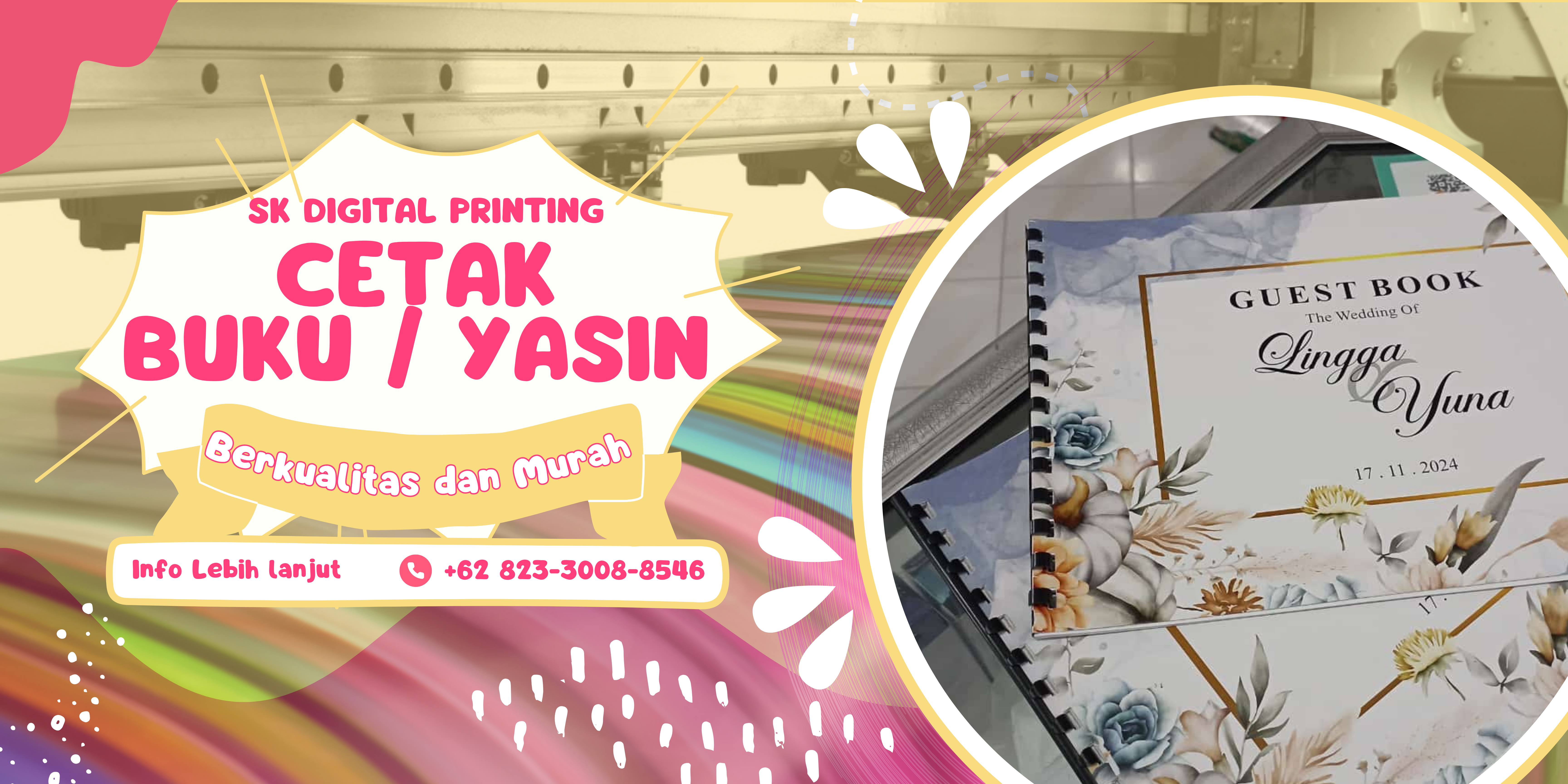 Dengan berbagai pilihan ukuran dan desain, SK Digital Printing siap memenuhi kebutuhan cetak Anda. Kami juga memberikan harga yang bersaing dengan waktu pengerjaan yang cepat dan tepat. Setiap buku atau Yasin yang kami cetak dijamin memiliki kualitas yang terjaga, memberikan kepuasan bagi setiap pelanggan. Percayakan kebutuhan cetak Anda hanya kepada kami!